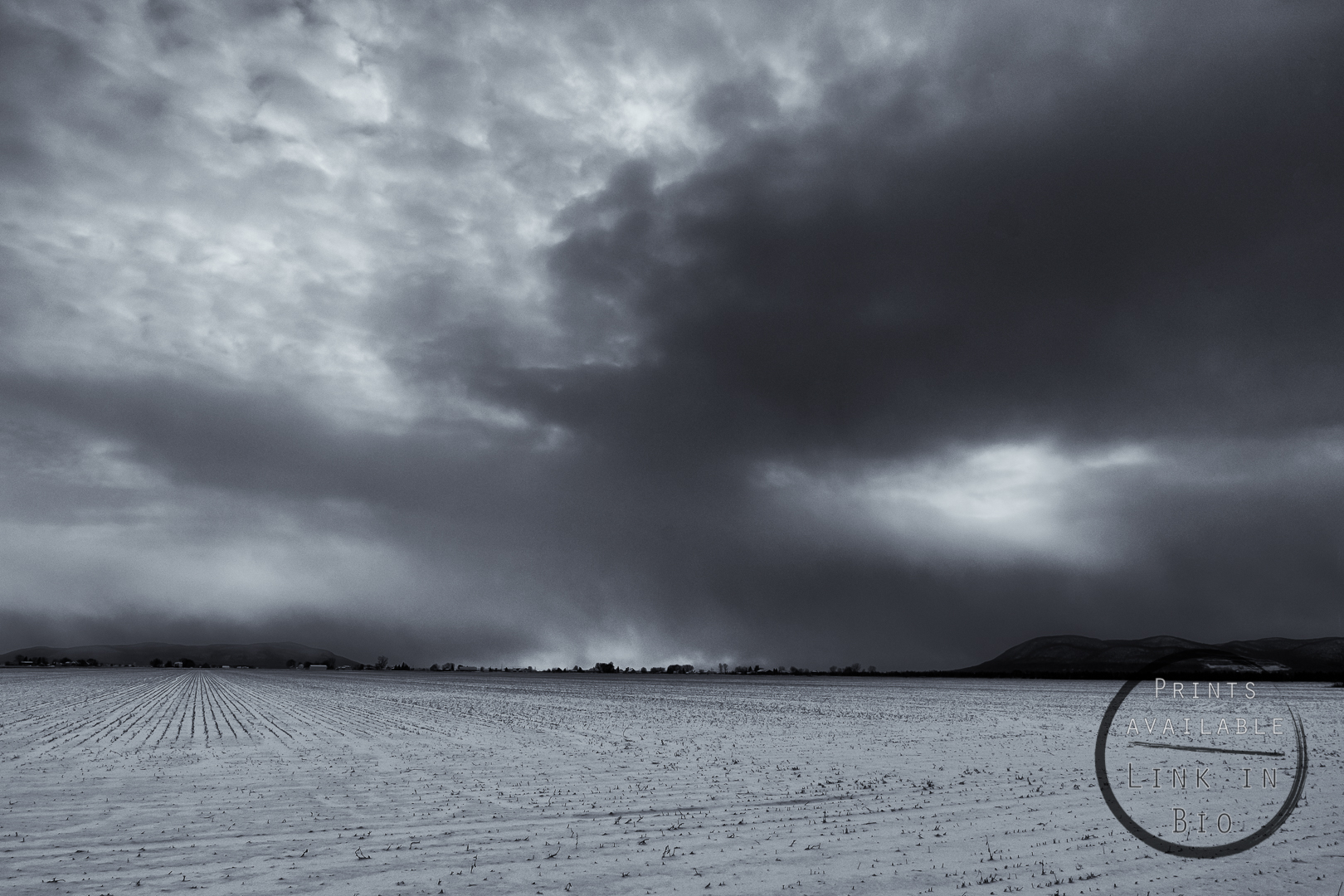 I am giving away a black and white metallic art print of a landscape. This limited edition is the first of tree prints.It was taken in Saint-Hyacinthe right after the first snow fall in december 2017.